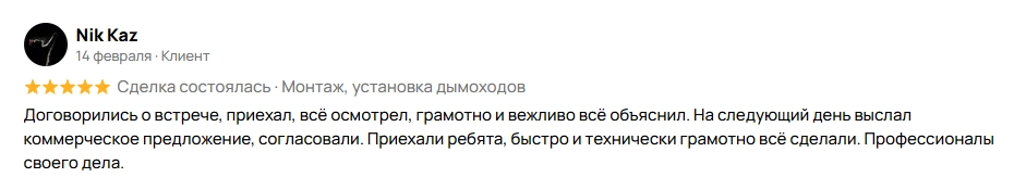 Даем честные сроки по установке и соблюдаем их. За 2024 год мы всего 1 раз задержали установку на 1 день. Была выплачена компенсация